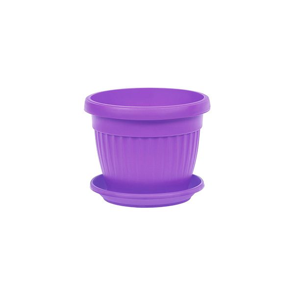 Саксия ребро лилава Ф12 – тя разполага със семпъл и елегантен дизайн. Дизайнът на саксията е изключително семпъл. От външната си страна разполага с релефни линии, наподобяващи ребра, а формата й се стеснява към дъното. В долната си част има очертани кръгове, които могат да бъдат пробити, за да може да се отича излишната вода.